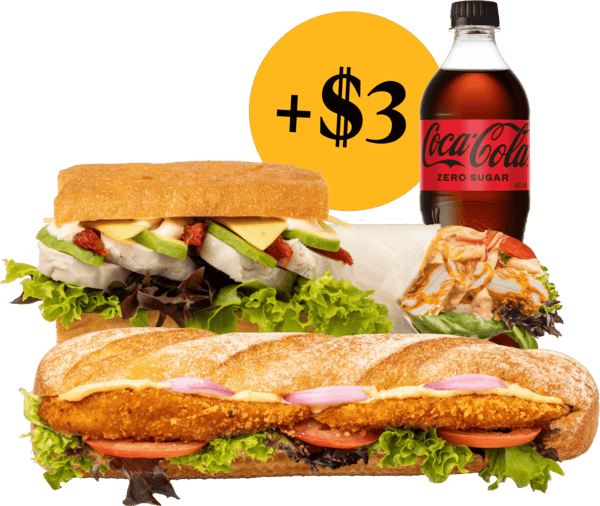 Add a 600ml bottle of soft drink to any lunch item for $3.