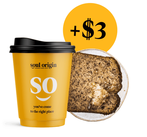 Add a delish piece of banana bread for $3 to your barista crafted coffee.