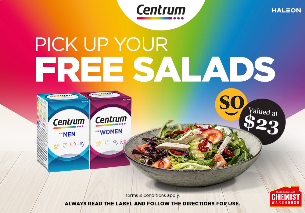 Looking to add more goodness to your day? This winter, we’re teaming up with Centrum and Chemist Warehouse to help you put your well-being first with a delicious new offer. For a limited time, when you purchase any Centrum Multivitamin at Chemist Warehouse (in-store or online), we're treating you to two fresh Soul Origin salads on us.